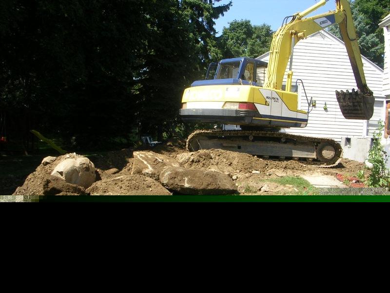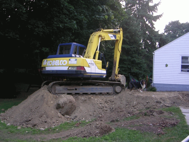Cutting Down the Red Maple Tree Demolition Begins & Dumpster is in! The Big Dig! and the yellow Monster The Foundation and the walls The Fill in ....... the yellow monster leaves.... The Walls are up Guts of the inside